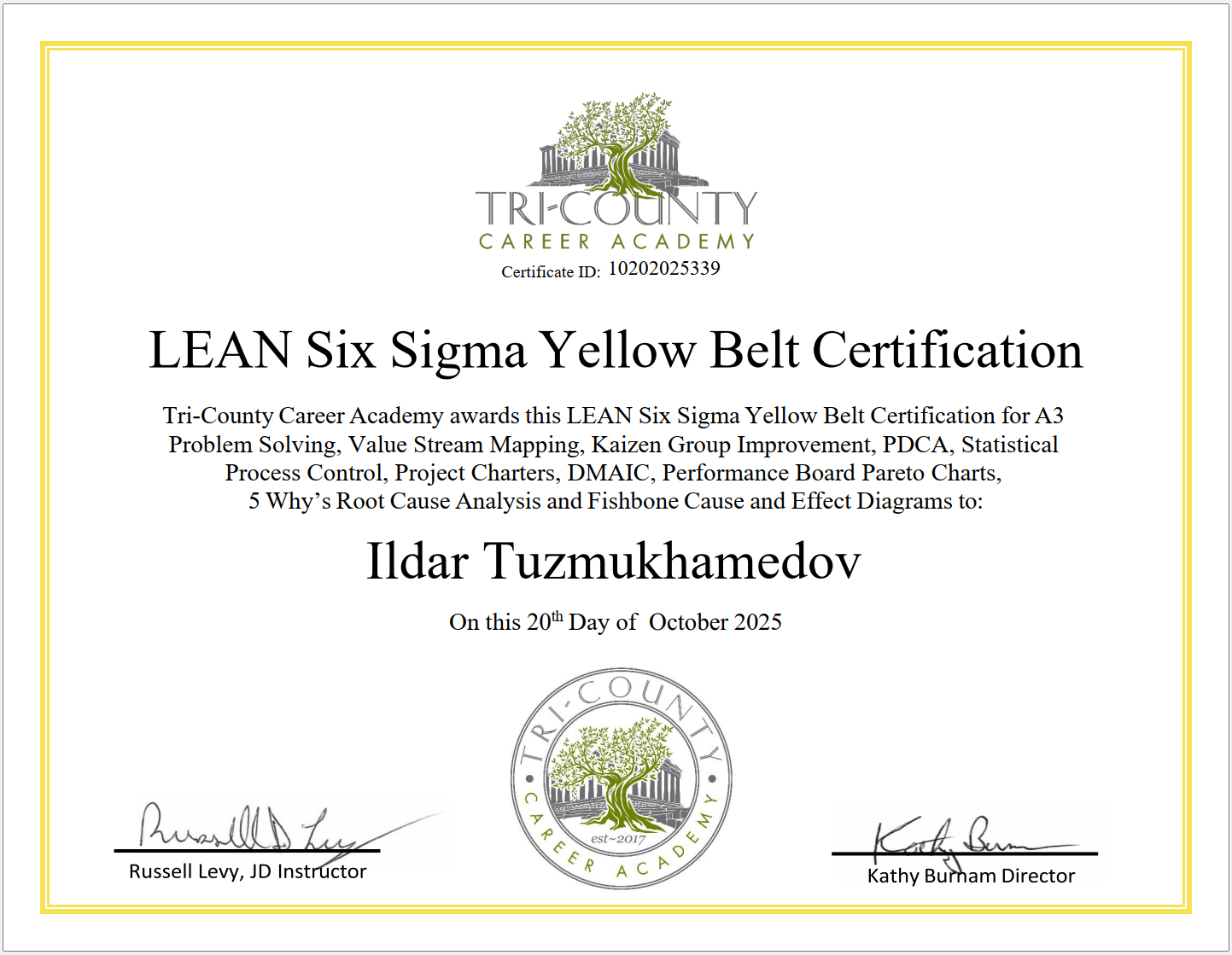Thanks to Russell Levy, and their entire VTS team of Veterans Transition Support & Tri-County Career Academy https://www.veteranstransitionsupport.org for doing Six Sigma courses for American veterans at no cost.